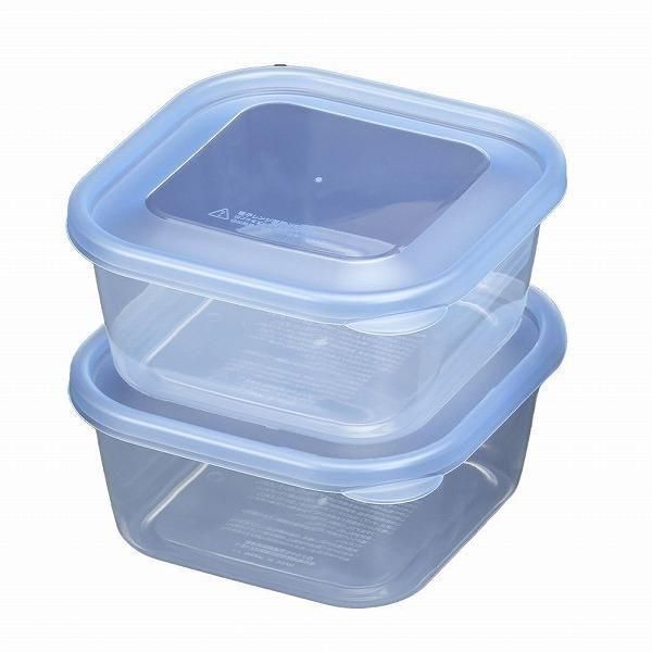 国産の原料(PL証明書・MSDS)を使用し、国内工場で商品化(製造セットアップ)を行った商品です。公的機関で耐熱耐冷試験(140度、-40度)も行っております。ただし、レンジ使用時にはフタをずらして使用する必要があります。同系統の商品に比べて肉厚であり、密閉容器ではありませんがフタと本体の納まりが良いです。形状は正角の750mlと手頃なサイズ、2個セットでお得感もあります。収納時も重ね合わせることが出来るのでスペースを取りません。ケース入数も80個と発注し易い。