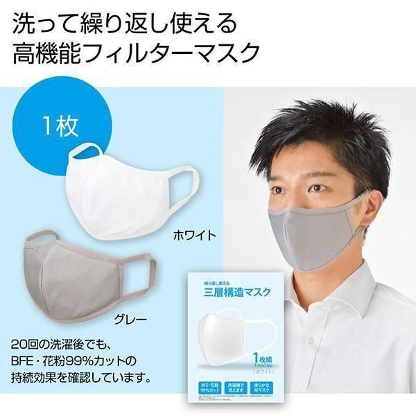 繰り返し使える 三層構造マスク1枚