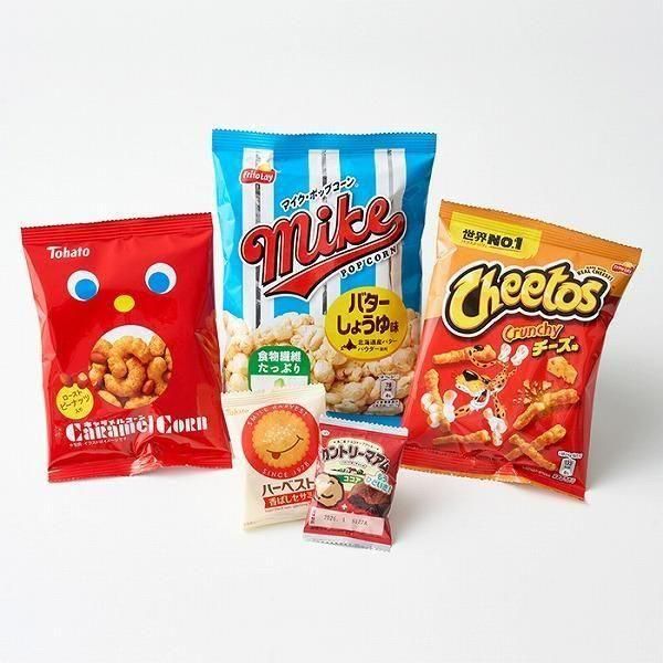 【備考】:内容量/チートス(チーズ味)・キャラメルコーン・マイクポップコーン(バターしょうゆ味)・ハーベスト(香ばしセサミ)・カントリーマアム(ココア)×各1個 賞味期限/常温180日 アレルゲン/卵,乳,小麦,落花生 ※ご注文締切/11月27日 お届けまでお日にちをいただいております。